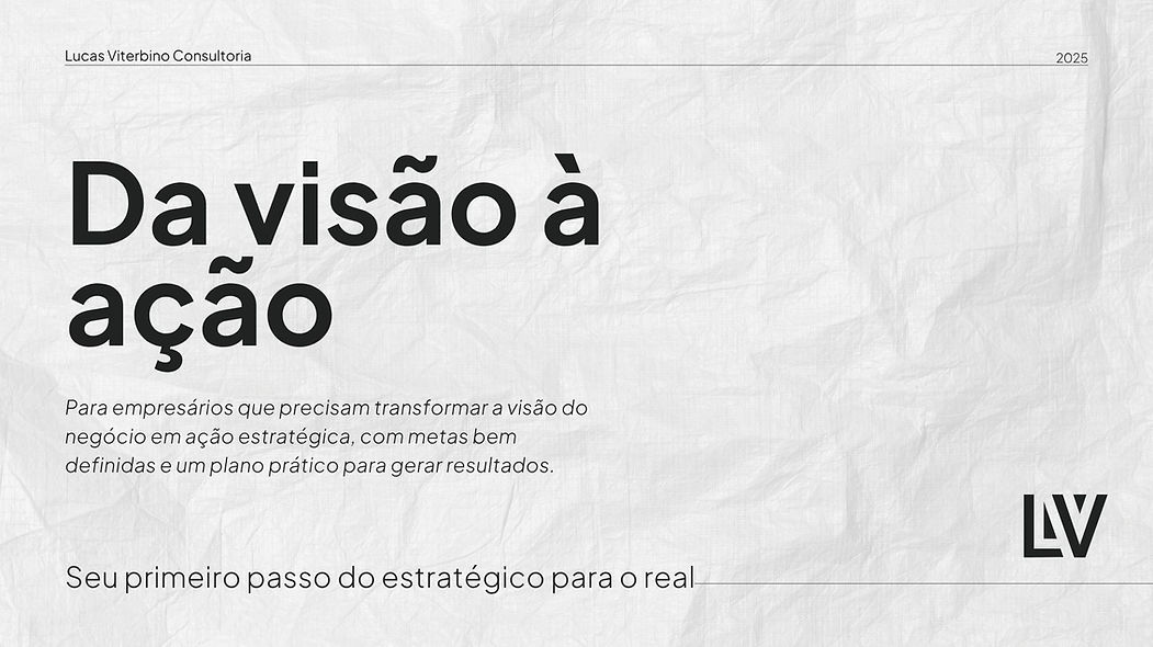3. Quais áreas a LV Gestão pode ajudar a melhorar? Trabalhamos com estratégia, processos, tecnologia e gestão de pessoas. Ajudamos a estruturar rotinas, criar indicadores de desempenho, automatizar tarefas e fortalecer a liderança da equipe.